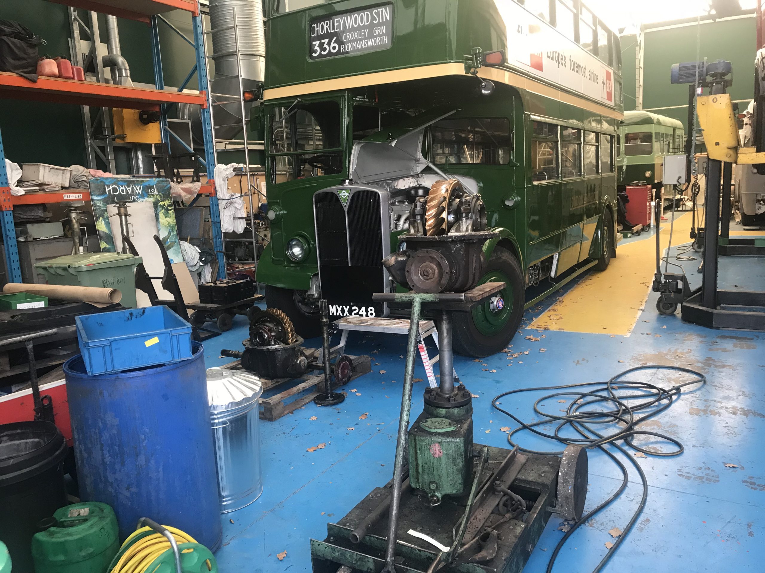 It gives us great pride to be trusted to work on some of our historic buses that are cared for by the London Bus Museum, in the first picture you can see the brass crown wheel within the diff on the substantial lift, the one we have just done is for the red single Decker from 1948.